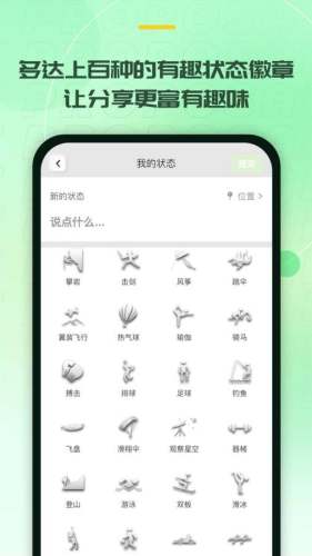 2、状态徽章- 多达百种的有趣状态徽章,让状态的记录和分享变得更简单、更有趣味。
