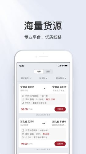 这是我们为司机定制化开发的用户平台,根据您的车辆、时间、装卸货地点等个性化设置,推送海量的一手货源信息任您选择;