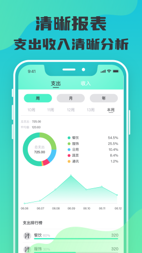 图表丰富:收支变化、每日支出情况一目了然,助您快速分析资金变动