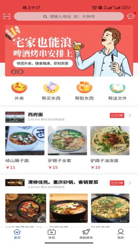 快速配送+团购的便民生活服务平台,集外卖、帮买、帮送、帮取于一体,