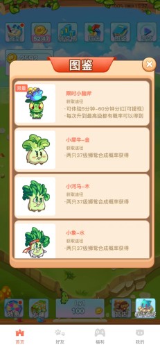 两棵同等级的蔬菜可以合成为高一级的蔬菜,让趣味升级。