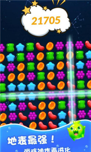 1.模式经典,就像市面上消除游戏玩法一样,玩家只需要将同类型的糖豆进行消除,并且达到目标分数就可以通过本关。