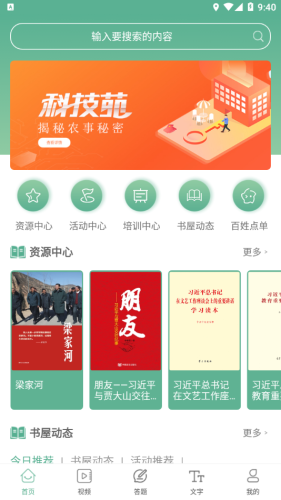 书香潞城app是一款农家书屋数字化平台,平台拥有首页,视频,答题,文字,我的等功能板块,可以帮助更好的阅读学习,欢迎前来下载使用。
