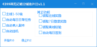 运行4399莽荒纪晴空辅助后,勾选所需功能,然后按F10即可启动辅助,按F12则可停止挂机。