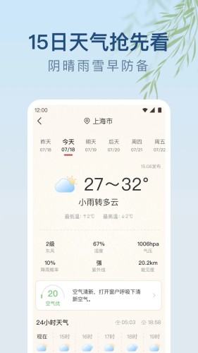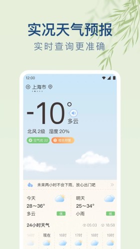 5. 24小时预报:可查看24小时内天气变化情况,上下班无忧;