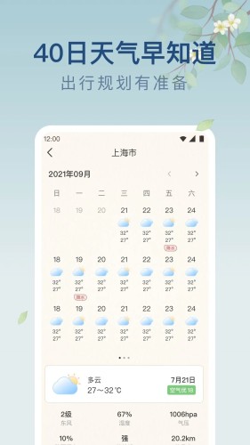 7. 40天预报:超长预报阴晴雨雪和温度变化,旅游出行保驾护航。