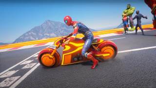 超人英雄赛车是一款独特而有趣的竞速类游戏,其画面表现力非常震撼,里面可以使用角色也都是漫威和DC旗下的超级英雄们,你能够自由地选择自己所喜欢的角色,然后骑上自行车,在高空赛道当中进行一场刺激而有趣的竞速比赛!