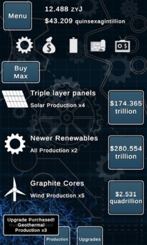 1、通过旋转齿轮手柄来产生能量,并通过投资资金来提高其效率,赚更多钱。