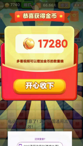 6、达到关卡的指定分数才能领取红包奖励,所以也需要一定的计策进行消除。