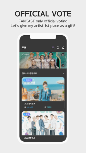 Fancast官方投票app,粉丝官方投票平台,各种投票活动尽在其中,随时查看投票状态,获取最新最全偶像信息,与各地粉丝轻松交流,追星的小伙伴千万不能错过。