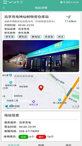 3、查看充电站信息,可查看此充电站的充电价格,电桩使用/占用情况,电站配套设施情况等;
