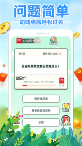 3、进入游戏开启答题挑战,每答对一道题目就能获得红包奖励,不断解锁更多关卡,获取更多红包奖励。
