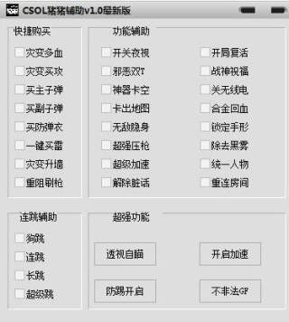 CSOL猪猪辅助是一款专门针对CS反恐精英ol制作的游戏辅助工具,这款csol辅助可以帮助玩家在游戏中进行快捷购买弹药、开关夜视、卡空、卡出地图、连跳、超级跳、透视自瞄、开启防踢等等辅助功能,帮助玩家获得更刺激的游戏体验,各种功能让你在游戏中成神,激情畅玩,开心游戏。