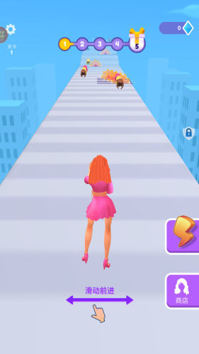 3、终极目标是成为最时尚的女王,让自己的秀发飘逸起来,为此需要努力跑酷刷新记录。