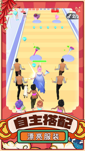 浪漫时装秀小游戏上线了,结合跑酷换装玩法,操控你的角色赛道上不断奔跑,搜集捧花,礼服,高跟鞋等衣服配饰,搭配你的造型,完成你的浪漫时装秀。