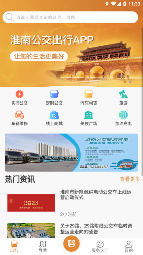淮南行app是一款掌上公交应用,软件拥有实时公交,定制公交,汽车租赁,旅游,车辆维修,加油充电,导乘等等功能服务,可以帮助更好的交通出行。