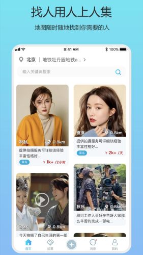 人集app下载,一款专业靠谱的文娱领域灵活用工平台,通过人集app用户可以轻松快速找到附近人才,演员模特,摄影装造应有尽有,在线沟通下单接单,欢迎下载。