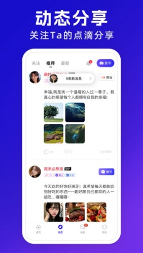 悦遇app,发布个人动态,展示精彩生活,认识更多有趣对象,随时随地在线互动,享受更贴心的聊天交友服务,在线聊天交友更高效、更轻松。