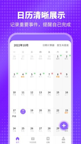 平行日历app下载,一款实用易用的综合日历工具,来平行日历app既可以随时查询日历,也可以记录每日事件,还支持日期计算,星座查询等,有需要就来下载。