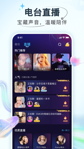 3、【电台直播】宝藏声音,温暖陪伴,讲述动听的情感故事,那些让你心动的声音,一起度过漫长时光。