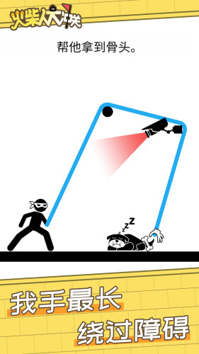 帮帮这个可怜的火柴人把,替他画出安全的黑线,让他逢凶化吉。游戏脑洞很大,需要开阔你的思维,帮助火柴人解决难题,越往后挑战关卡越难,帮助火柴人获得最终胜利吧。