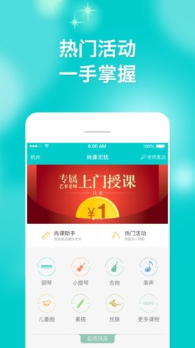 尚课无忧是一个连接艺术培训老师和学生,通过老师上门、学生上门、协商地点多个培训方式,完成线上与线下真实有效互通的专业艺术教育培训平台。