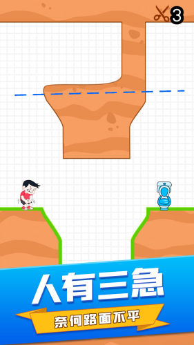 画线消除,抖音热门画线闯关小游戏。这里你需要帮助小男孩顺利上厕所,解锁更多的道具,合理画线轻松过去天坑,赶紧到达如厕吧,非常搞笑。