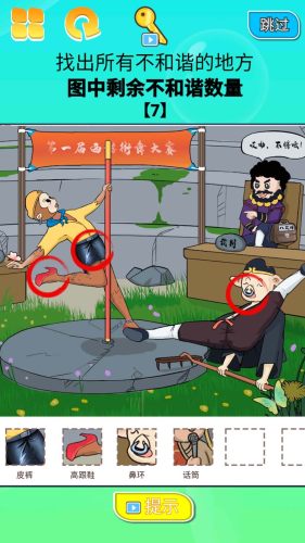 1、游戏玩法非常简单,只需要找出图片之中的不和谐之处,并且全部找出来即可。