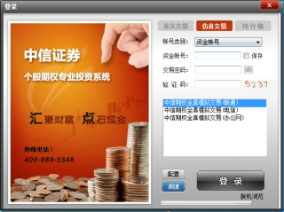 本中信证券汇点个股期权专业投资系统为仿真版,喜欢用汇点个股期权投资的新手可以使用本软件先练练手,具有真实的行情和仿真交易功能。