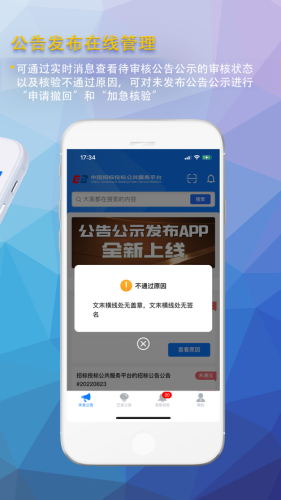 通过公告公示发布APP,发布人可以对其未发布的公告公示信息在线申请驳回和加急,了解核验不通过的原因。