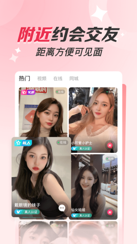 附近社交、兴趣约会、在线互动,开始甜蜜同城恋爱之旅。