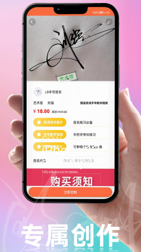 ● 专属创作 为您提供高清图片、签名视频、背透图片,既可以快速掌握签名技巧又可以适用多种场景;