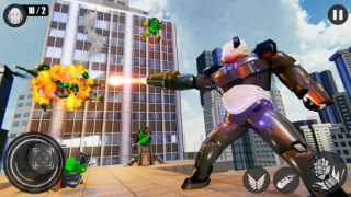 1、飞天熊猫机器人3D高清画面作为游戏背景,以独特的射击枪战作为游戏的主要玩法。