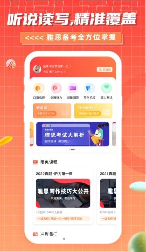 专注于雅思考试教学的[雅思GO] APP,能助你随时随地,不受束缚,大胆练习,更有上万名雅思考试达人实时在线共同学习,让你备考不再孤单。