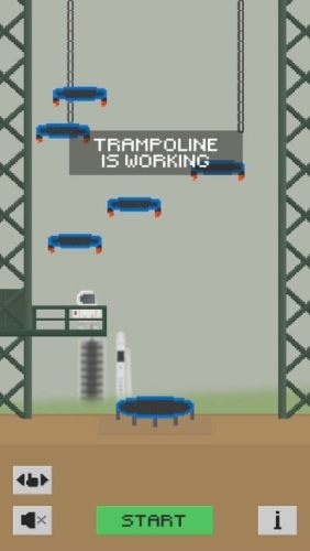 蹦床在工作是很好玩的像素休闲游戏,玩家们在游戏中可以看见航天元素,想要顺利通关就必须要掌握跳跃的时机以及其他能力,当等级升上去以后玩家们会发现难度变高了许多。