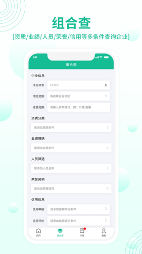 组合查——资质/业绩/人员/荣誉/信用等多条件查询企业;