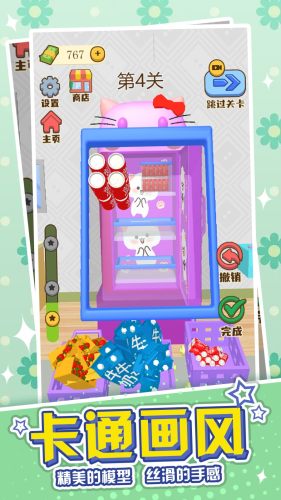 2、只需要简单点击屏幕内的操作选项,滑动各种物品,轻松收纳,一秒上手。