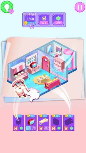 2、设计、装修、解锁新房间,各式房间等你装修。