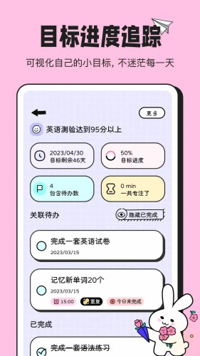 拒绝呆板的工具!和上进的小兔叽成为朋友,在有趣可爱的手绘风格中记录和实现你的计划。
