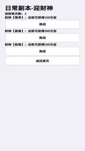 一款非常简单的挂机文字游戏,玩家可通过挂机获取游戏道具强化自身实力一路闯关获得更高的挂机产量。游戏内道具可通过挂机获得。