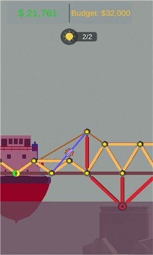 1、你只需要滑动手指,用最少的木材建造一座坚固的桥梁,你就可以得到更高的分数。