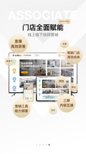 口袋里的营销工具,为门店提供产品和案例信息、为门店提供营销工具(售卡、秒杀、拼团、直播、抽奖)赋能,实现门店高效获客、锁客。