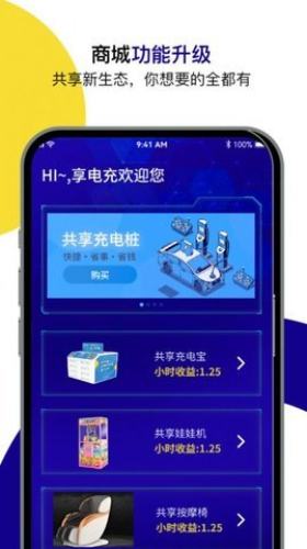 享电充APP全新综合整合平台 自主开发商城 用户一键下单 平台投放 后台托管 轻松管理 大大减少人工成本 成为享电充会员每日专属任务 赚取额外收益 新用户注册福利多多哦!