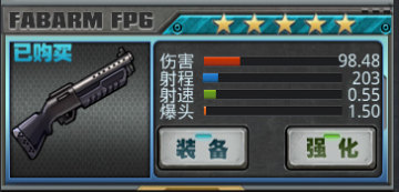 5)散弹枪:距离越近,伤害越高,近距离战斗无敌.切使用灵活,重量较轻,但射程很短,远距离作战不推荐。