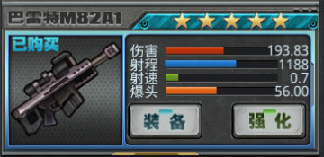 3)狙击枪:伤害高,射程超远,装备后视野增大,杀人于无形之中,但射速较慢,不够灵活,装备后角色一定速度会小幅降低