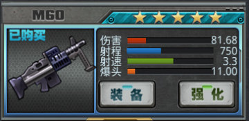 4)重机枪:射速快,弹量多,射程远,大规模作战不二之选,加特林更是号称“官方作弊器”,火力凶猛,但重量较大,装备后角色移动速度会较大幅度降低。