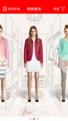 2.将选择的衣服穿到虚拟模特身上展示穿着效果;