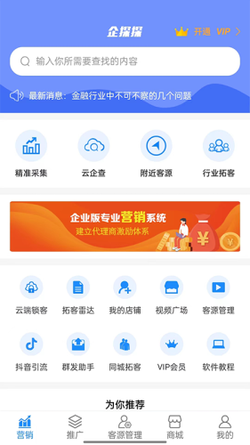 企探探app下载,一款强大高效的展业拓客系统应用,通过企探探app全国客户信息一键搜索,地图拓客精准采集,多维度拓展人脉,精准获客展业,有需要就来下载。