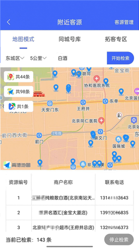 2、地图拓客:精准定位,获取直径范围内任意类型客源。