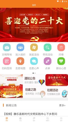 静乐文明实践app,发布本地最新资讯信息,关注文明实践活动动态,轻松参与感兴趣内容,时刻关注本地动态,了解身边精彩内容,随时参与感兴趣的公益活动。